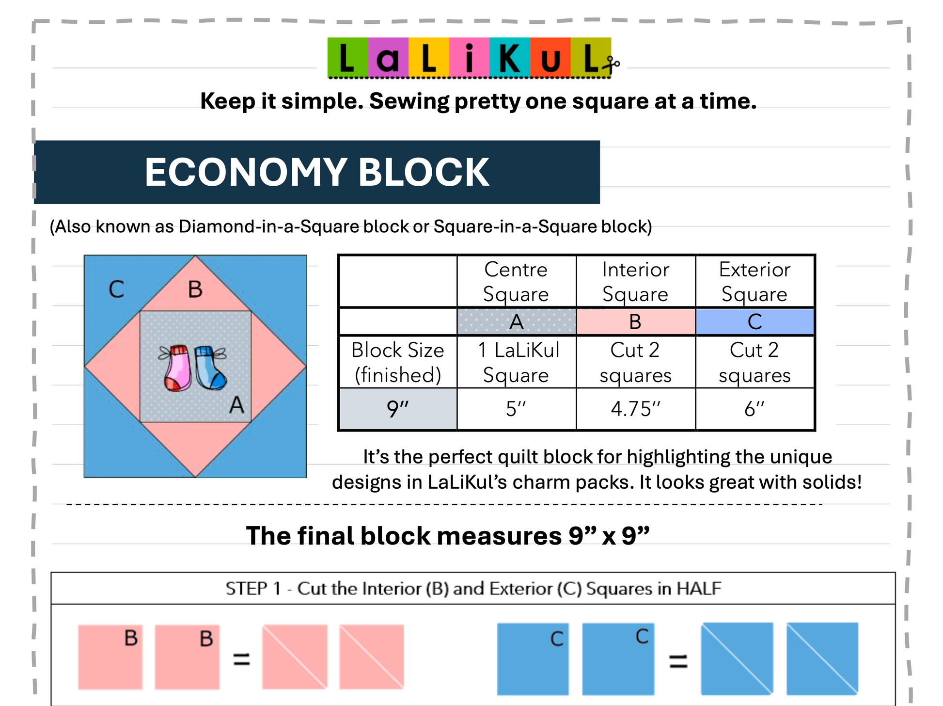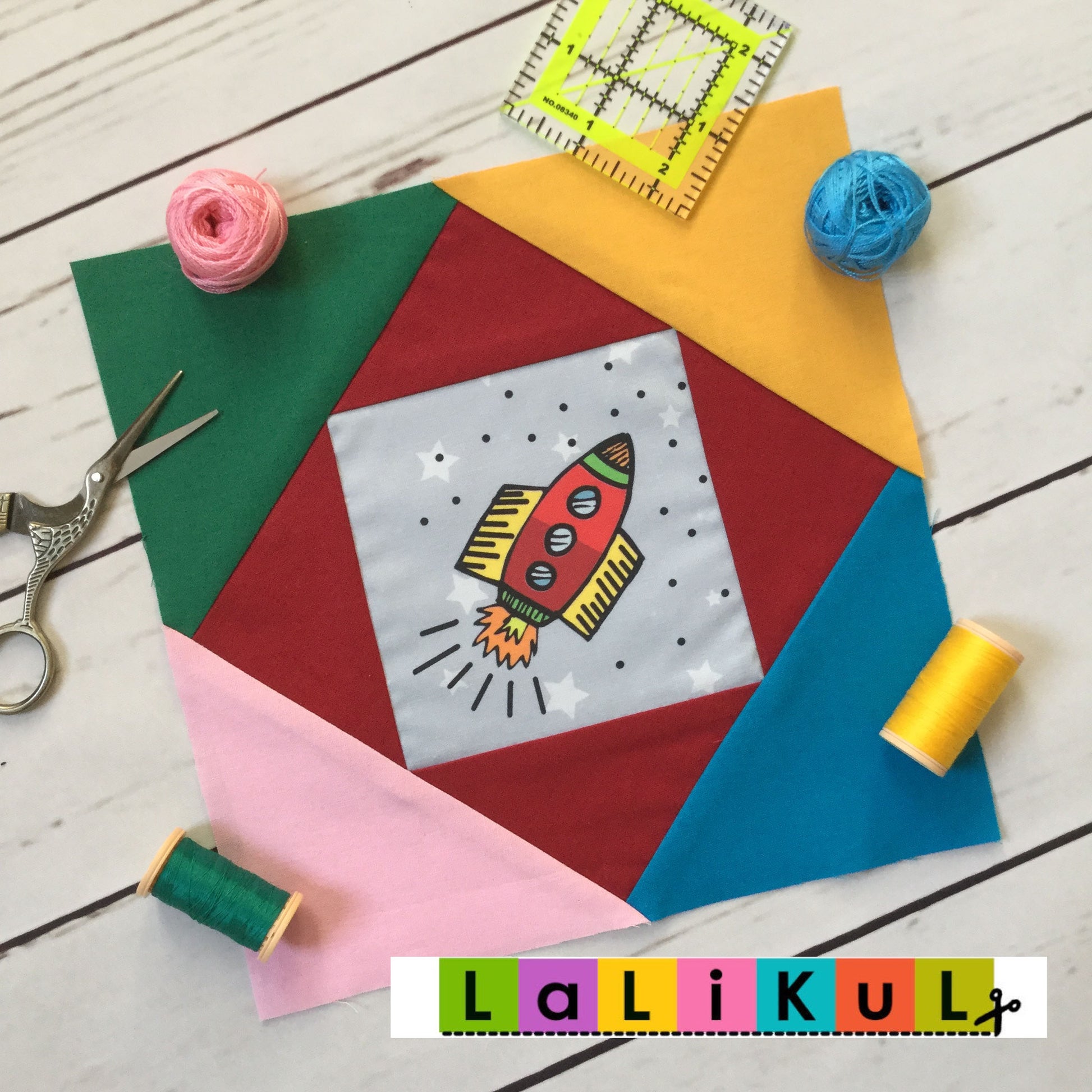 Using LALIKUL’s 5” fabric squares keeps the process easy: the pieces are already sized to fit, so that you can focus on accurate seams and colour placement. With just a few cuts and stitches, you’ll have a timeless “square in a square” block that works beautifully in any quilt layout.